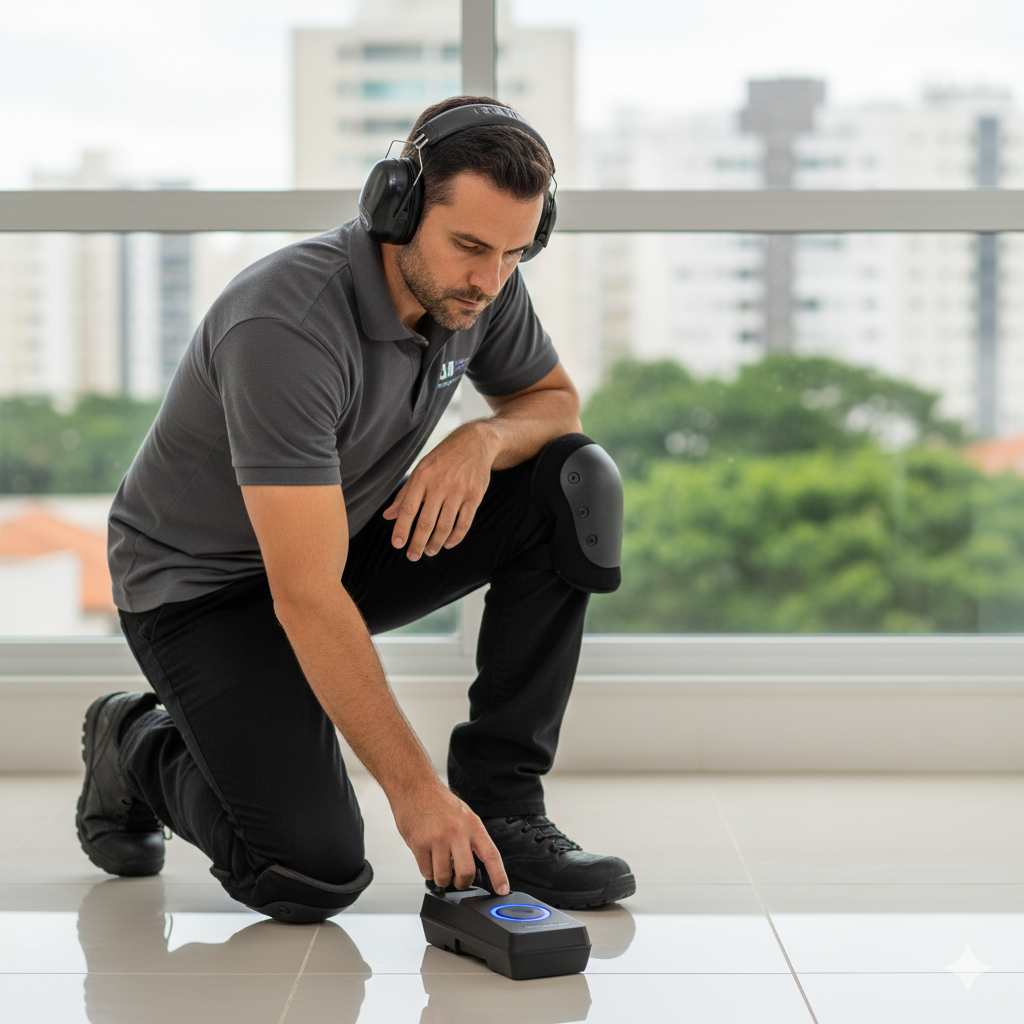 - Economia Real: O custo de localizar um vazamento eletronicamente é infinitamente menor do que o custo de refazer um banheiro inteiro após tentativas frustradas de encontrar o erro quebrando paredes.