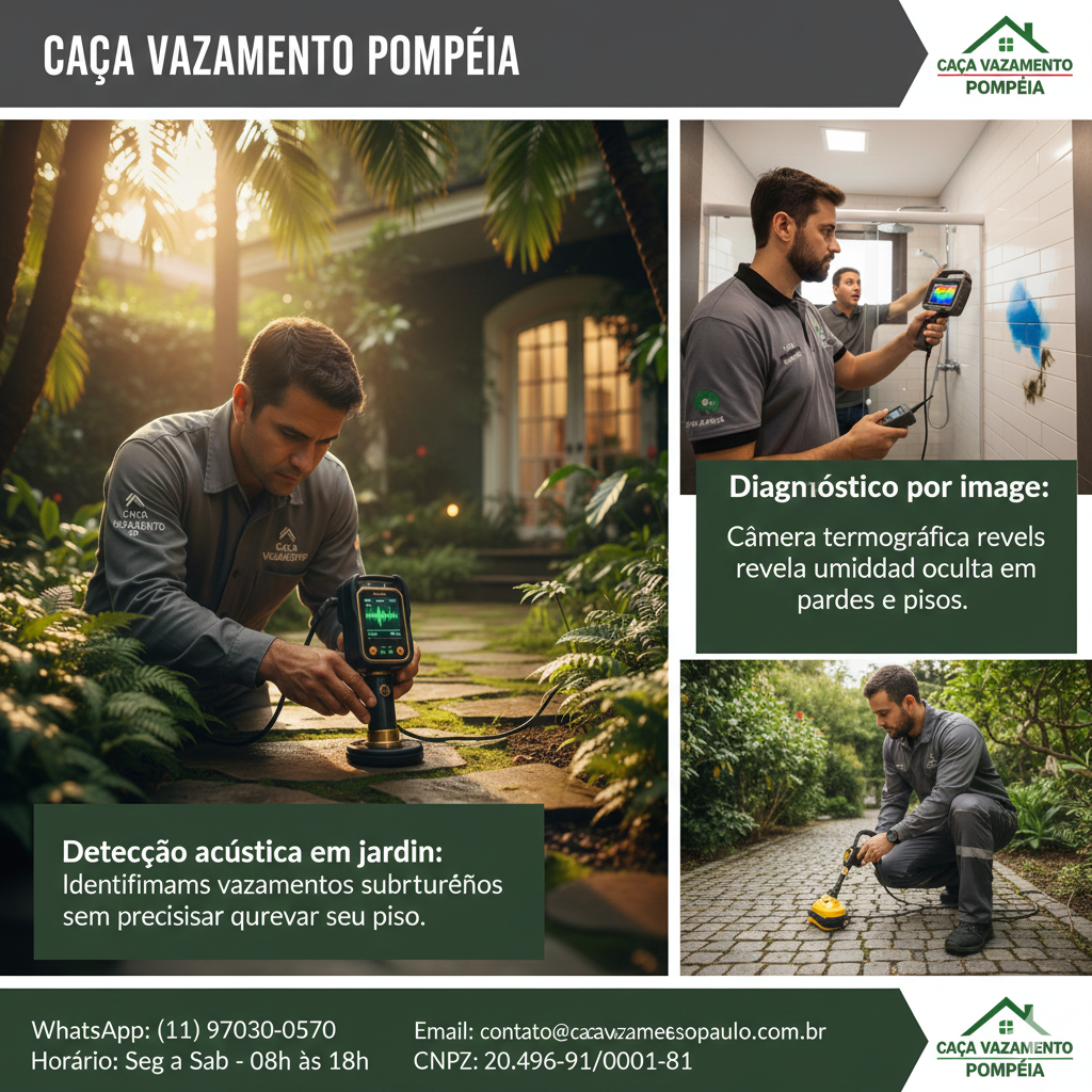 - Geofone Ultrassônico Digital: Detecta o ruído de vazamentos sob pisos e jardins, ideal para as casas e áreas comuns de condomínios na Pompéia.