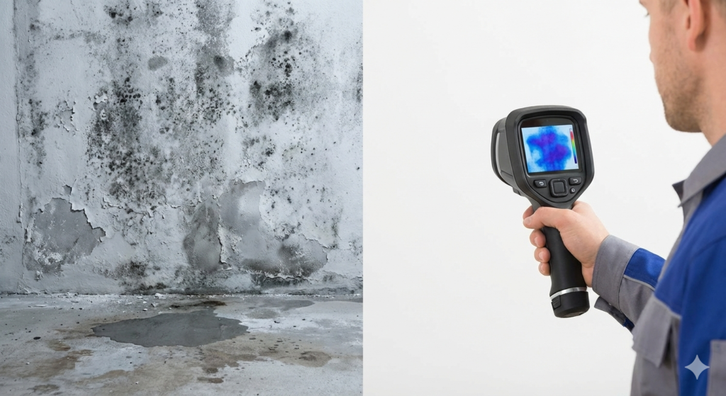 - Câmeras Termográficas: Detectam diferenças sutis de temperatura nas superfícies, indicando onde há acúmulo de água (frio) ou vazamentos de água quente.